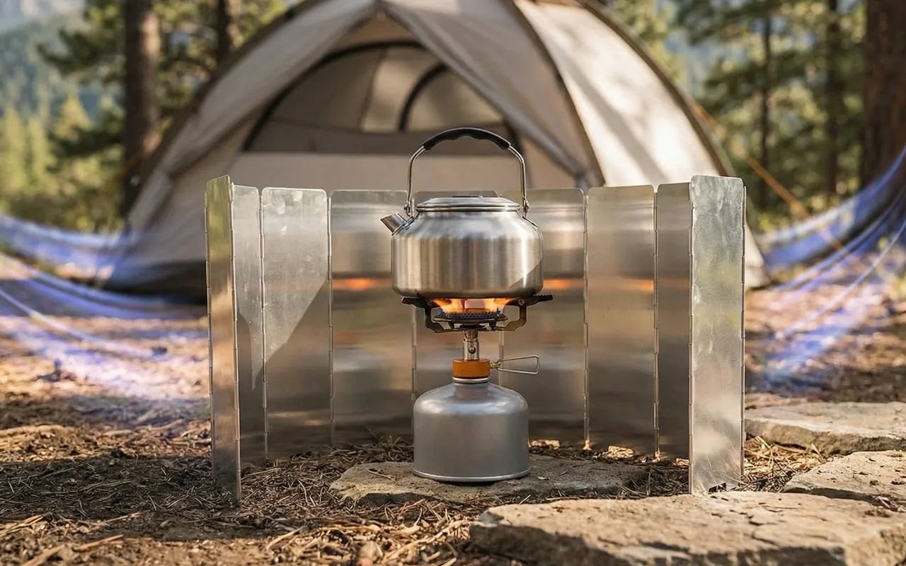 The stove shield made our camp cooking so much easier. Even on windy hills, flames stayed put and it packed into my backpack easily.