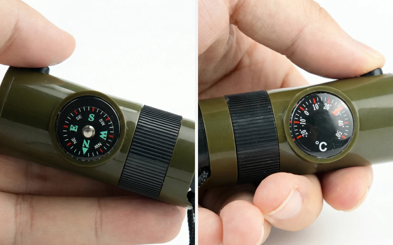 I like simple gear, and this whistle covers a lot. The small storage tube holds water tabs and the compass stayed accurate during a three-day trek.