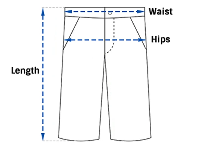 | SIZE | LENGTH | WAIST | HIPS | |||