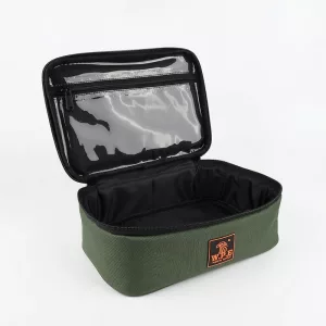I like how this case fits under the boat seat. Dark color hides stains, and the inside pockets keep my bobbers, weights, and tools from bouncing everywhere.