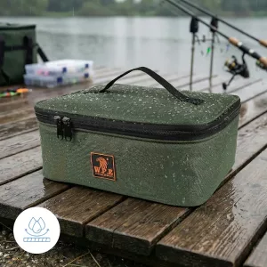 Got the green bag for my husband. He loves how everything fits neatly, from hooks to line spools. It stayed dry on a wet riverbank all afternoon.