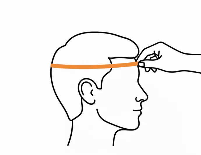 • 1. Wrap the measuring tape around the widest part of the head, just above the eyebrows and ears.