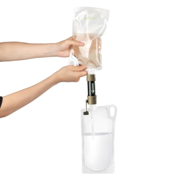Clear water can be squeezed out easily through this water filter. Made with gravity water filtration it has a bucket connector and hose included for the DIY filtration system. This personal purification water filter filters up to 2000 liters of natural renewable freshwater without using any chemicals. You can extend its lifespan by cleaning it with water backwashing. Backflush can rinse away impurities that the membrane has filtered from the water. What’s more, you can also drink directly from a fresh water source with this filter. There is a silicone gasket around the mouthpiece.