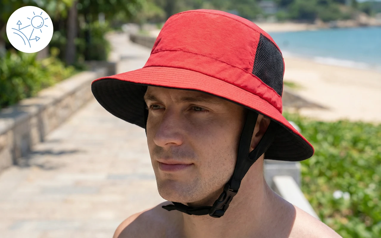 Bought this sun hat for long beach walks and it’s fantastic. My face doesn’t burn, the mesh keeps me cool, and the strap holds during wind.